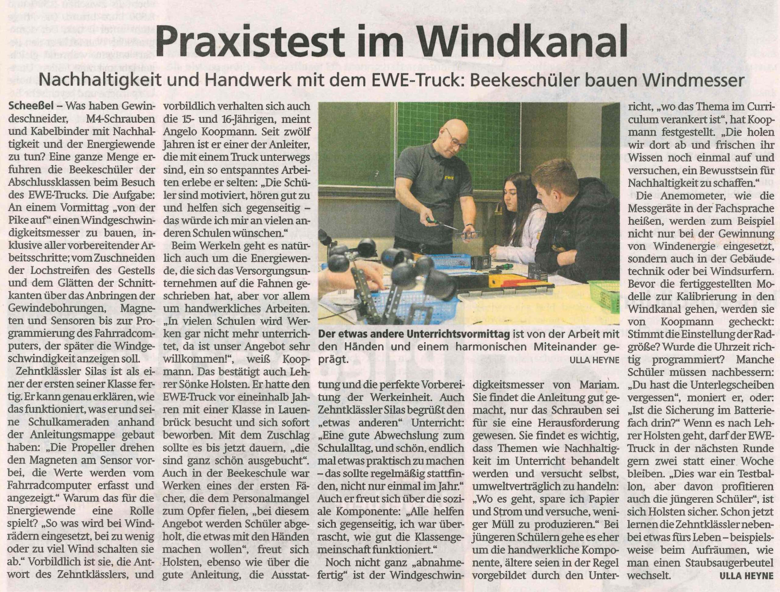 Die Sparkasse Scheeßel hat heute symbolisch einen Scheck in Höhe von 1.000 Euro an den Förderverein BeekeSchule e. V. übergeben. Das Geld fließt in das Chorprojekt „Beeke Voices“. Damit können weitere moderne technische Anschaffungen – wie zum Beispiel neue Mikrofone – finanziert werden. Rainer Bassen von…